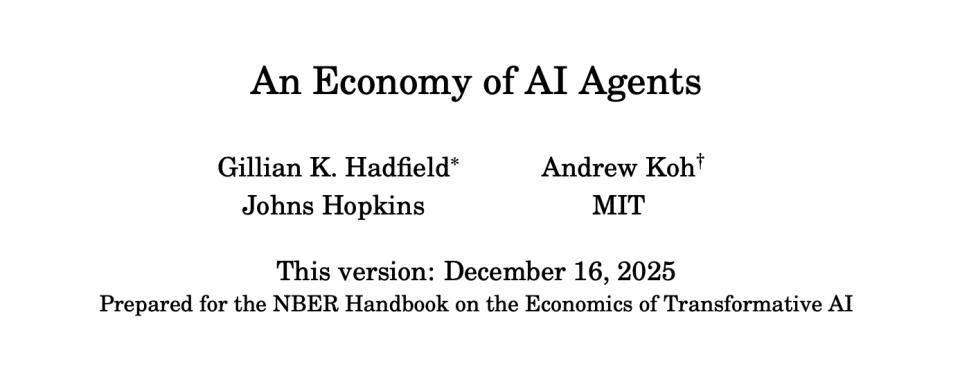MIT(麻省理工学院)的一篇《An Economy of AI Agents》的研究,大概描述了一下公司这个架构的未来。