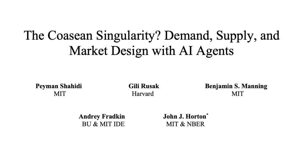 MIT的论文《The Coasean Singularity? Demand, Supply, and Market Design with AI Agents 》就描述了未来的智能体经济会带来的交易改变。