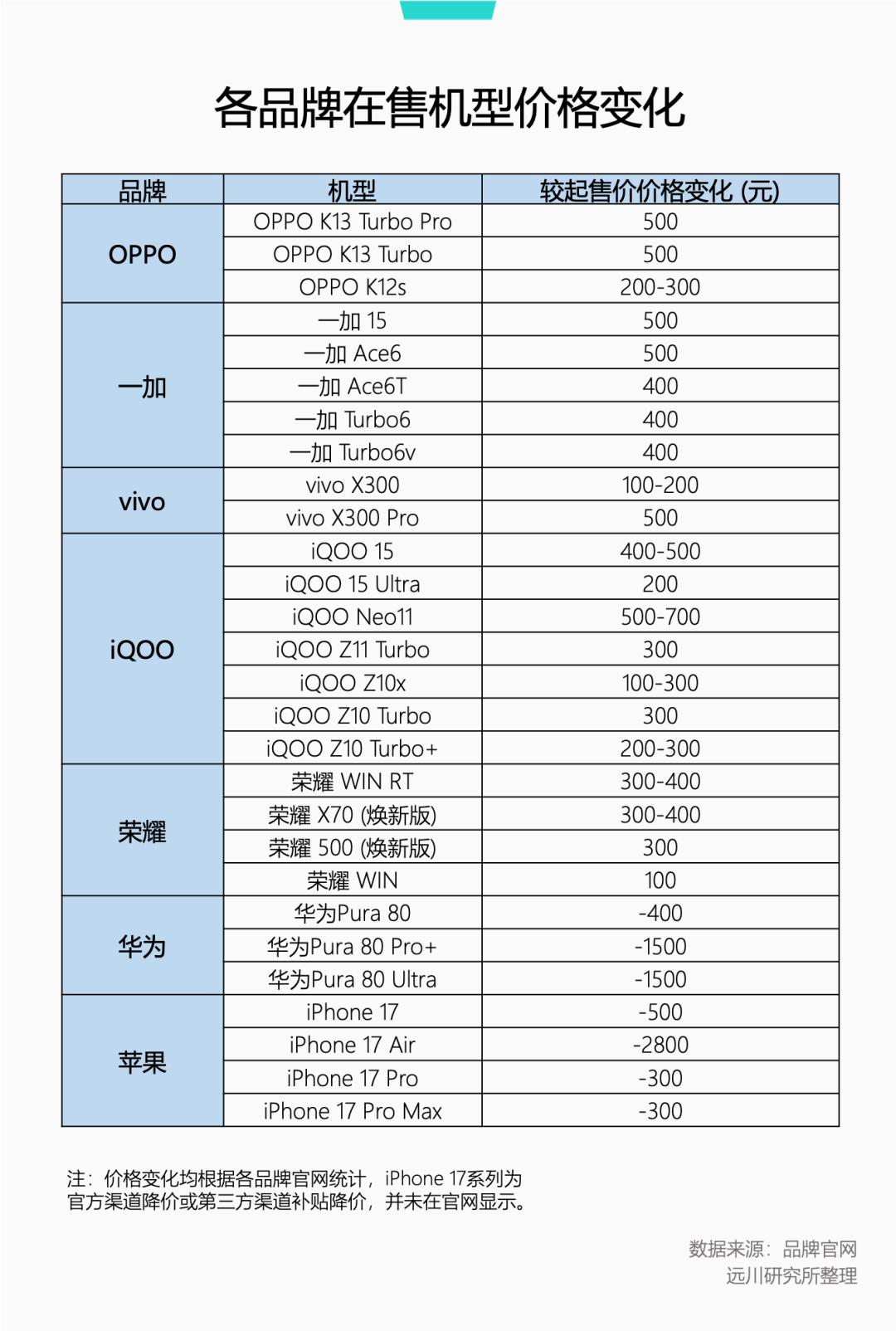 这也是为什么OV小米涨价的同时,华为和苹果的部分机型居然不涨反降。