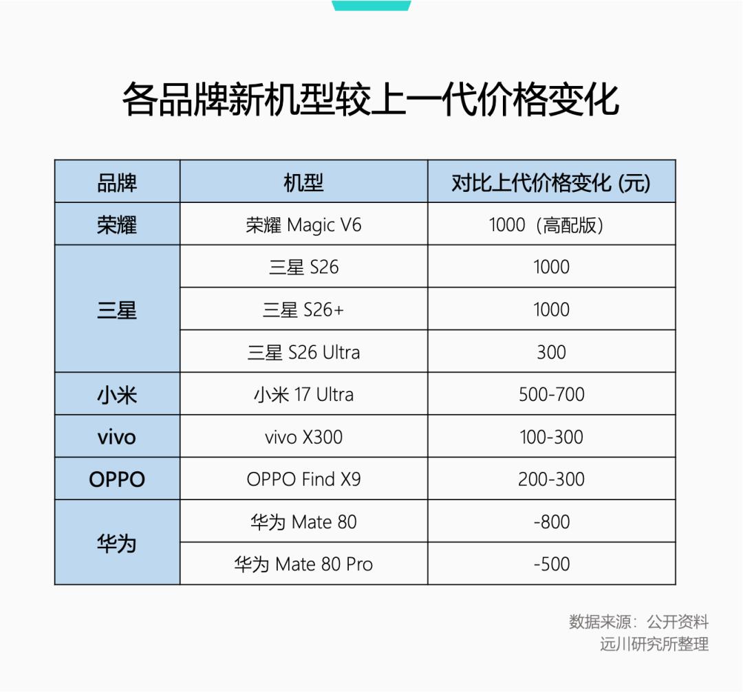与之类似,vivo旗下IQOO涨价的7款机型中,有5款原起售价在1500元-2500元之间;荣耀除Magic V6外,还上涨了三款原价在3500元的机型。