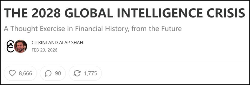 就像今年刷屏的《2028年全球智能危机》报告里被人反复引用的一句话所写的:“这是历史上第一次,经济中最具生产力的资产,创造了更少而非更多的就业岗位。”