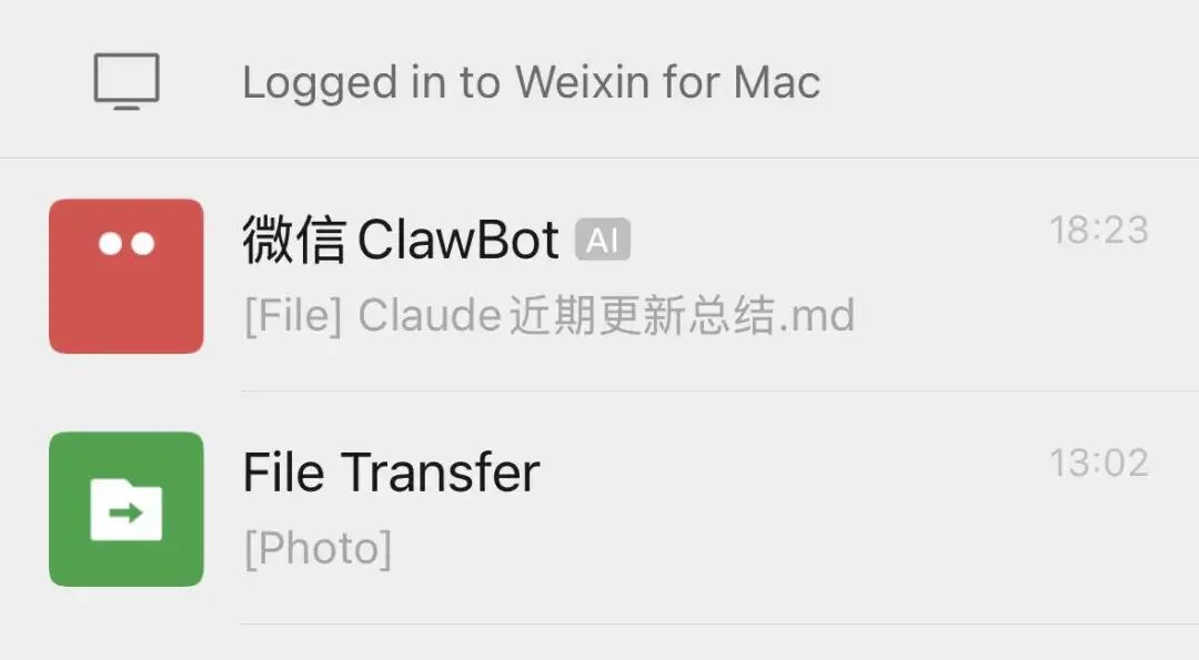 一开始,开放度高的 Telegram 和飞书是普遍推荐的对话入口。3月22日,微信也全面开放入口,在文件传输助手上方从此多了一个红色的微信 Bot(可改名)。