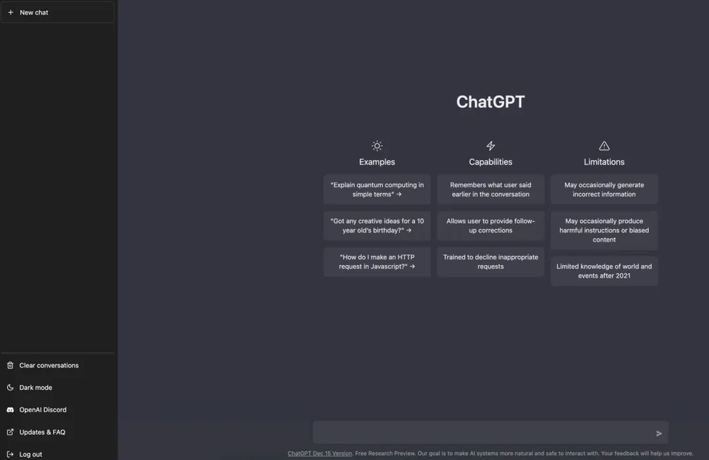 ChatGPT 初代界面 —— UI 被压缩为一个输入框。语言替代了界面结构,功能不再依赖 UI 层级。