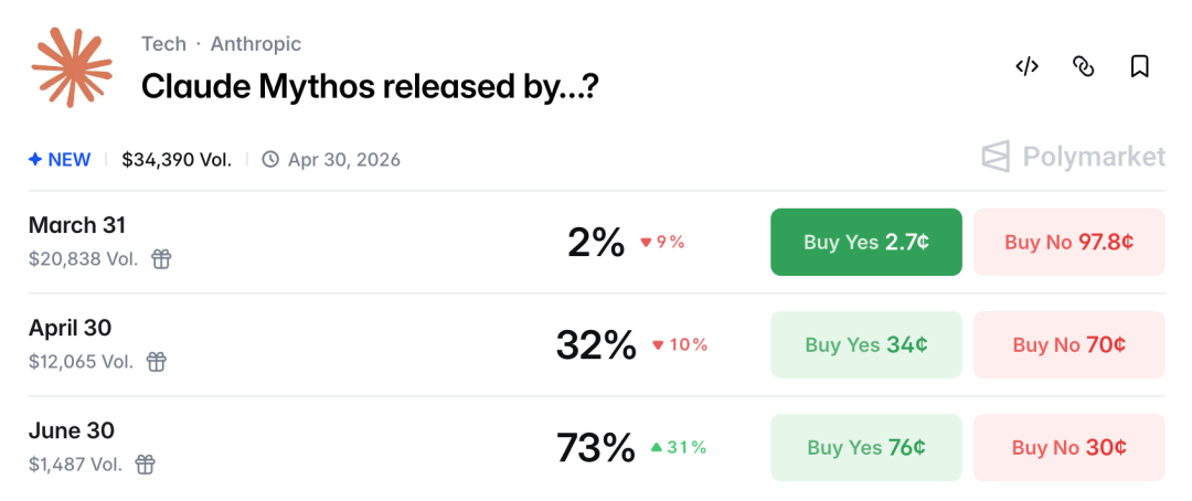 现在,在Polymarket上,人们纷纷开始预测其发布时间:预计在6月上线的胜率高达73%。