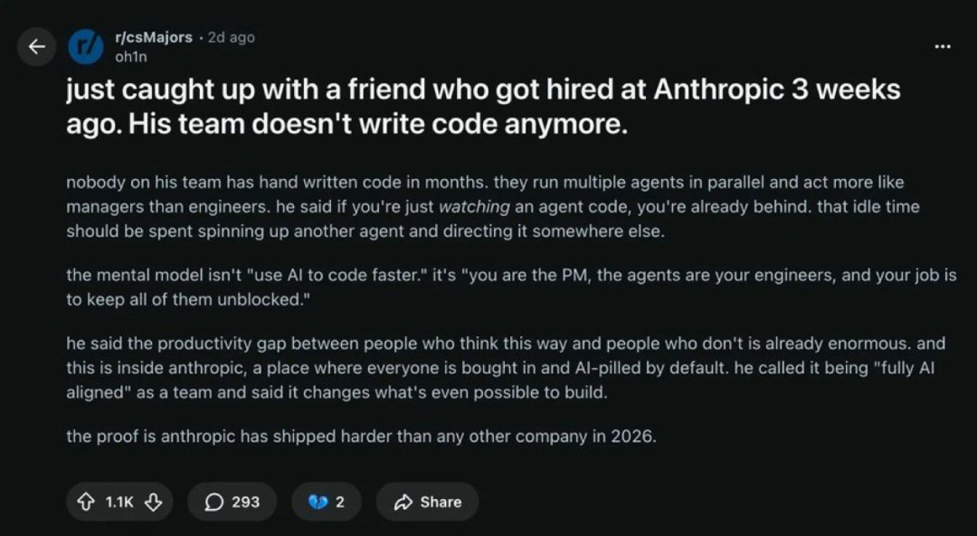 或许,100% AI编写代码,有些夸大了AI的效果,但真正值钱的技能开始转向了: