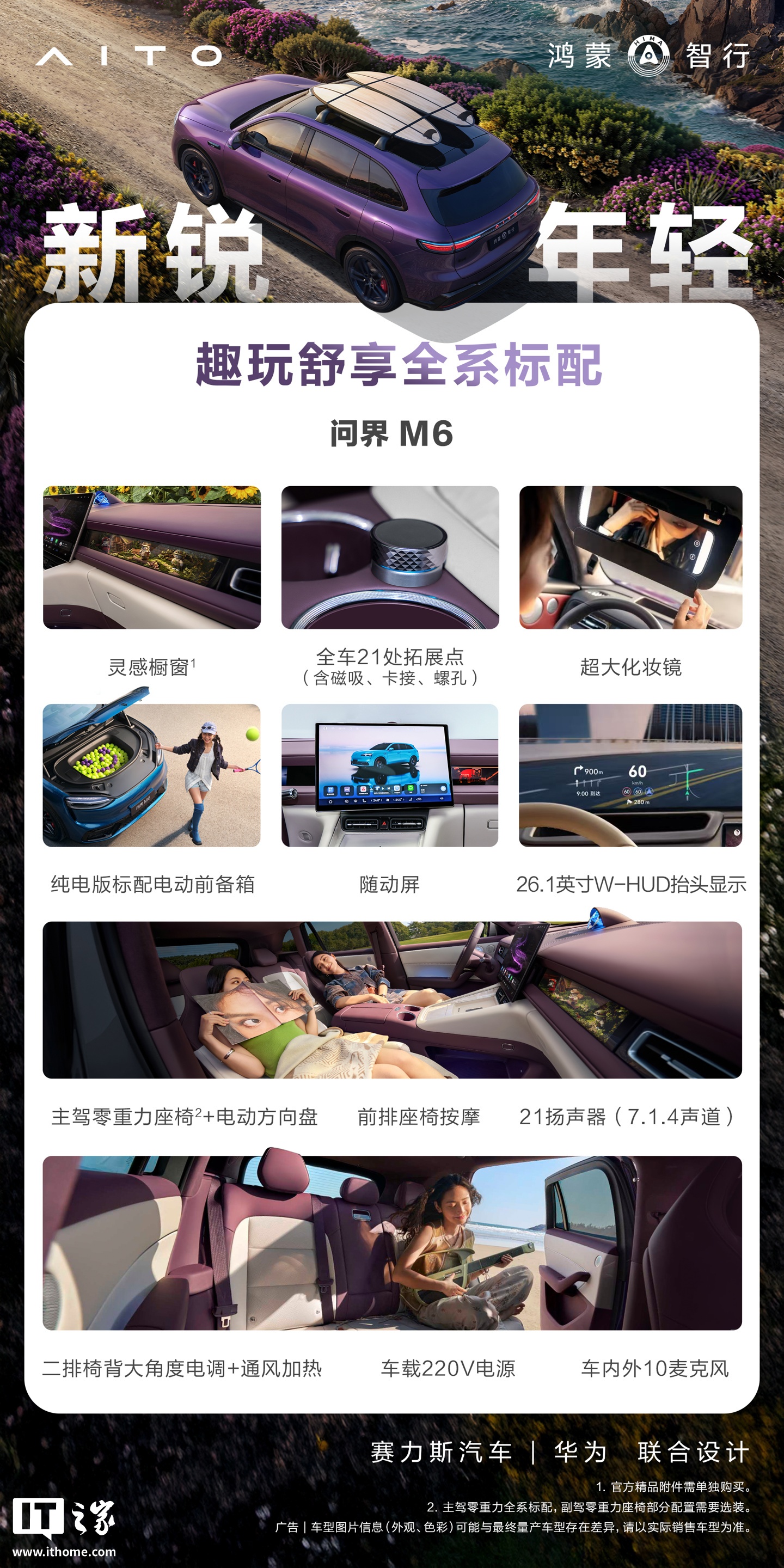 IT之家整理鸿蒙智行问界 M6 汽车标配配置如下: