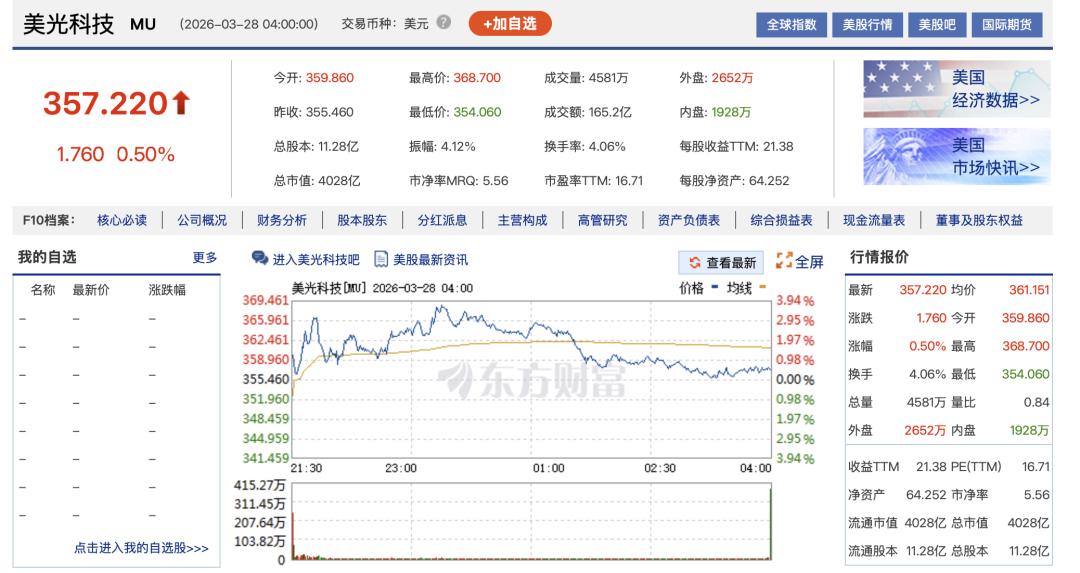 Amir Zandieh回高博士邮件的当天,美光科技(MU)当日收高 0.5%,成交额 162.46 亿美元,但本周累计仍下跌 15.5%。