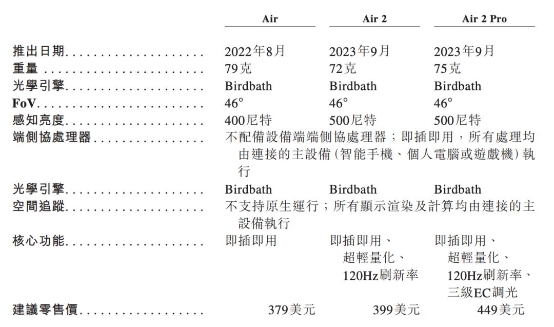 其中,Air系列是入门级产品,用户基础更大。该产品聚焦沉浸式观影、主机游戏及移动办公等高频场景,佩戴体验与普通眼镜相近,支持即插即用,能连接手机、PC和游戏主机。