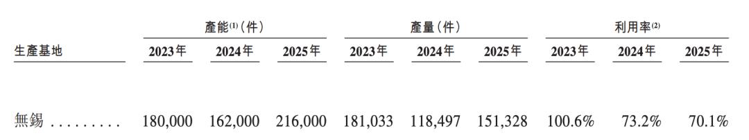 生产方面,该公司在无锡运营了一个2万平方米的生产基地,2021年建成,2025年产能达到21.6万件,产量为15.13万件。根据招股书,该基地是其核心光学引擎模组的主要制造基地。