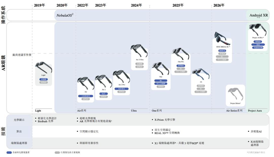 XREAL在招股书中透露了2026年的新产品动向,包括与华硕ROG合作、面向游戏的ROG XREAL R1;Air系列的新品Project Helen,旨在以更具竞争力的价格触达更广泛用户;与谷歌在安卓XR平台上开发的下一代旗舰产品Project Aura。