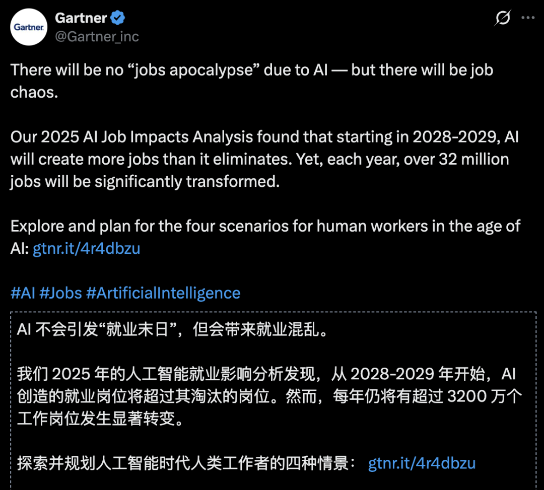 【新智元导读】2025年美国已有近5.5万岗位被AI直接蒸发,但咨询巨头Gartner扔下一句重磅:没有就业末日,只有「岗位狂飙」的阵痛期,你准备好被砸碎再重铸了吗?