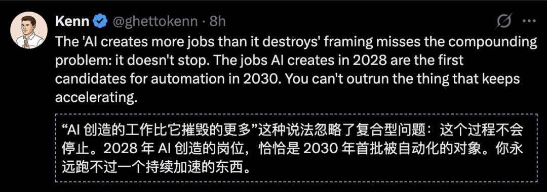 但也网友指出:问题的核心不是岗位数量,而是哪些岗位第一波消失,
