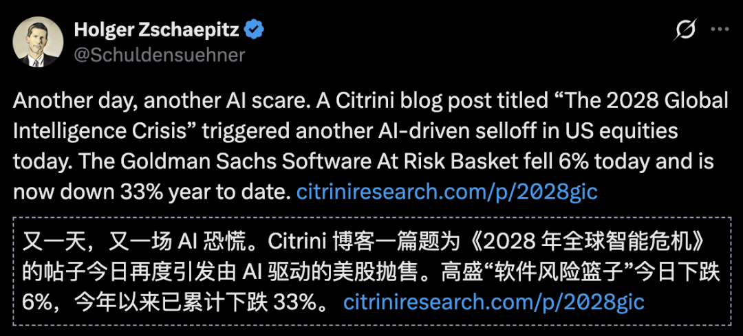 SaaS末日后,一篇「AI鬼故事」再次引爆美股抛售潮。