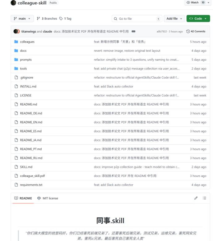 “同事.Skill”这个GitHub项目火出圈了。