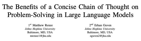2024年的论文《The Benefits of a Concise Chain of Thought on Problem-Solving in Large Language Models》显示: