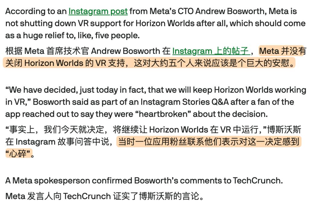 在公布关停 Horizon Worlds 的第二天,Meta 又突然撤回了新闻,说不关了。