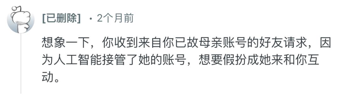 2025 年底,Meta 获批了一项颇为争议的 AI 专利。这项专利描述了一种系统,能够利用大语言模型分析已故用户的帖子、评论、点赞、聊天记录、语音消息,然后部署一个机器人接管账号,继续回应动态、回复私信,甚至模拟音频和视频通话。
