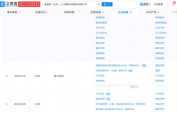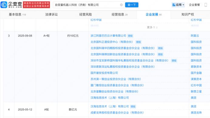 2025年6月,美团龙珠领投其A4轮融资;随后,美团和美团龙珠再次领投其1亿美元的A5轮融资;2026年2月,美团龙珠再次参投其10亿元的B轮融资。