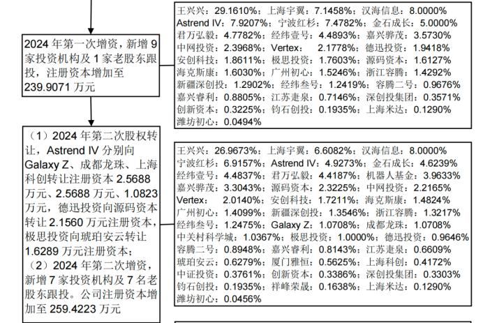 有意思的是,美团的部分持股来自于雷军的转让。宇树招股书中显示,在2024年第二次股权转让中,雷军名下顺为资本关联公司Astrend IV,将部分注册资本转让给了Galaxy Z和成都龙珠。这一轮股权转让和增资后,Galaxy Z持股1.0708%,成都龙珠持股1.0708%。