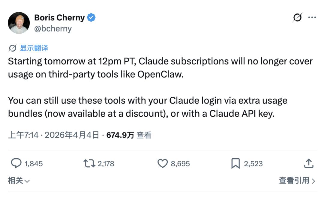 Claude Code 负责人 Boris Cherny在 声明里说,订阅服务“并非为这些第三方工具的使用模式而设计”。这句话没有错,但它遮住了一个更基础的问题:没有任何订阅服务能被设计成覆盖这种使用模式。Agent 场景下的 Token 消耗量没有上限,也没有历史数据可以参考,任何固定月费都是在对一个无法建模的变量做猜测。