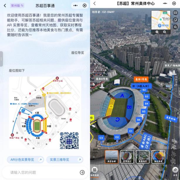 比赛开始前,不少外地球迷照着手机小程序里的座位引导,很快就找到了自己的座位。“我第一次来常州奥体,本来以为座位不好找,没想到一个小程序就能搞定,还给我推荐了常州的萝卜干、银丝面馆,太贴心了。”一位来自苏州的球迷一边展示着手机上的“灵犀·晓伴”苏超百事通,一边满意地点头说道,“这下看球、逛吃两不误了。”