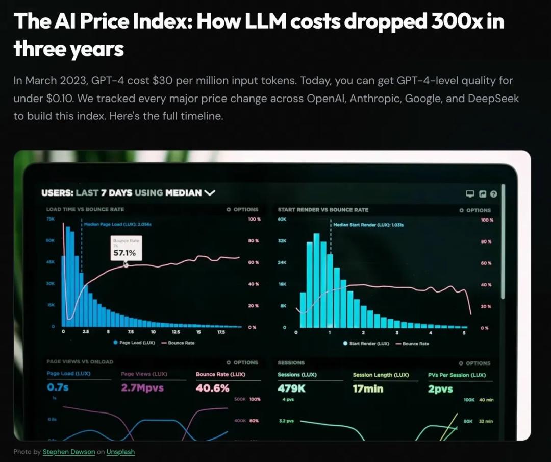 图:三年间,LLM Token单价下跌约300倍——但单价的崩塌并没有让企业的AI支出变得更可预测。(来源:TokenCost)