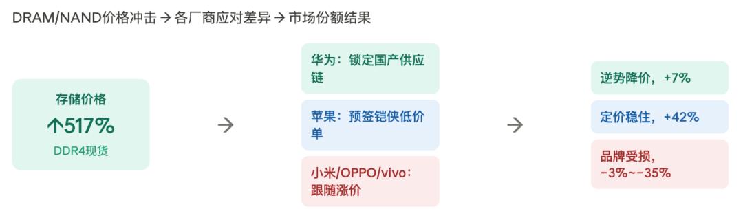 华为降价抢份额,苹果靠供应链预判反弹42%,小米扛着品牌包袱暴跌35%。