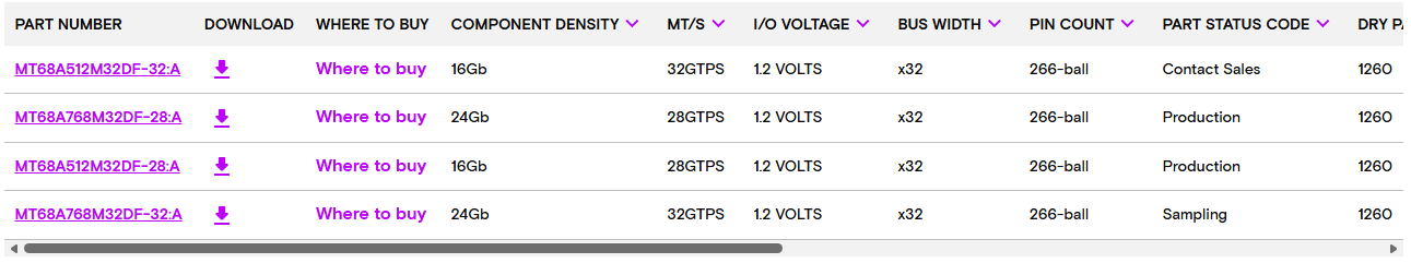 4 月 20 日消息,Micron(美光)官网显示,其已正式提供 24Gb (3GB) 容量版本的 GDDR7 显存(内存),提供 32Gbps 和 28Gbps 两种规格。这意味着三大 DRAM 原厂的 24Gb GDDR7 均已正式推出。