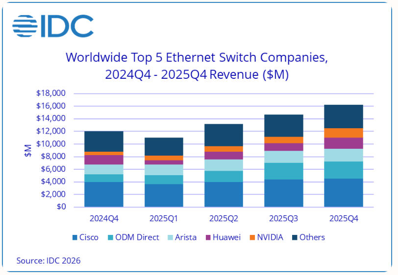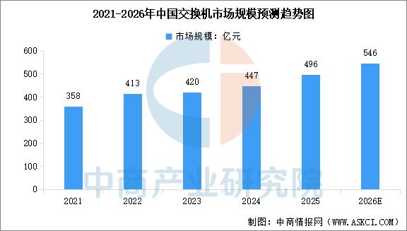 IDC数据显示,2025年全球以太网交换机市场收入飙升至551亿美元,同比增长31.5%,其中数据中心细分市场的增速达到了惊人的53.5%。在中国,“东数西算”工程与国产替代浪潮的双重叠加,让本土市场呈现出更强的韧性,中商产业研究院预测2026年中国交换机市场规模将达到约546亿元。其中,数据中心交换机是核心增长引擎。