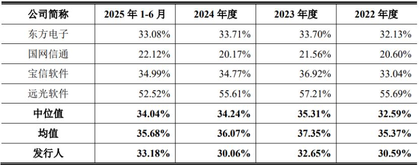 报告期内,南网数字的毛利率为30.59%、32.65%、30.06%及33.18%。其中,受行业竞争加剧及个别项目影响,2022年至2024年公司的数字电网物联感知设备、数字基础设施毛利率均有所下滑。