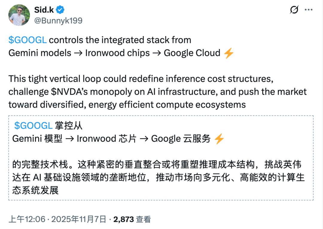 当所有AI公司都在抢购H系列GPU时,谷歌早已在自己的TPU集群上完成了自我造血循环——训练、部署、推理、优化,全都在自己的系统内部完成。