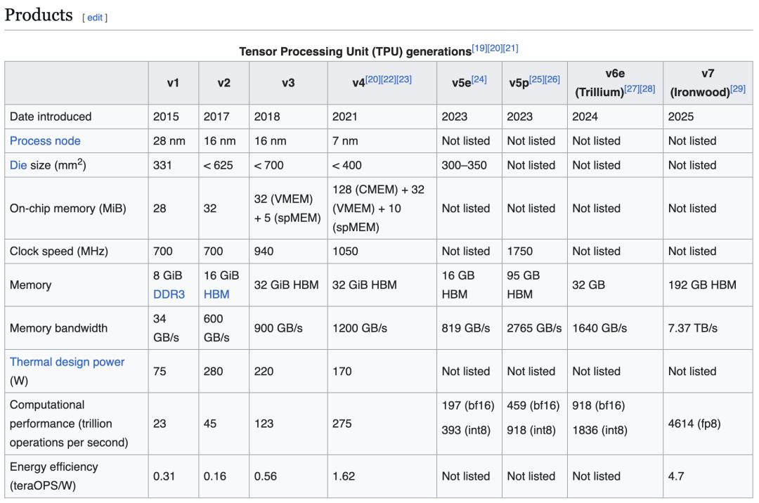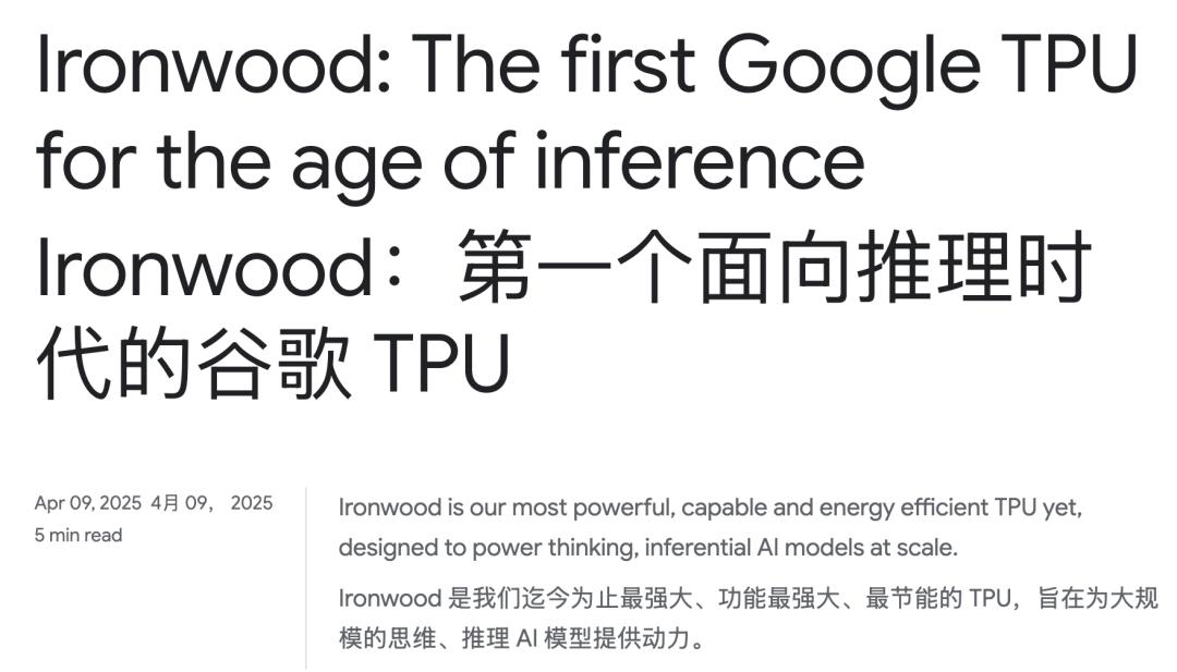 TPU v7,代号Ironwood,于2025年4月发布。
