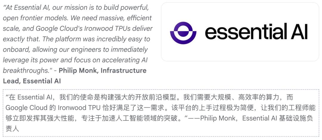 比如,谷歌列出了一些已经下订单的企业,Anthropic、Lightricks、essential AI。