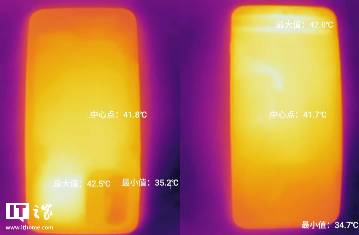 而在机身温度方面,《崩坏:星穹铁道》游戏时的机身表面最高温度为 42.5°C,热量分布比较均匀,由此可见「冰河散热系统」在高负载下能将温度控制在相对合理的范围,确保用户长时间游戏时的握持体验。