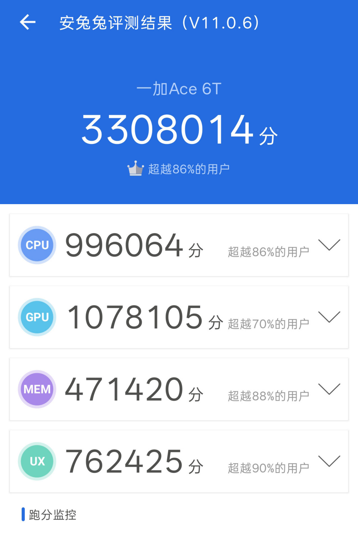 体验之后我们发现,一加 Ace 6T 的表现有点“不讲武德”,不仅在跑分上超越了上代老大哥骁龙 8 Elite,游戏性能也不遑多让。