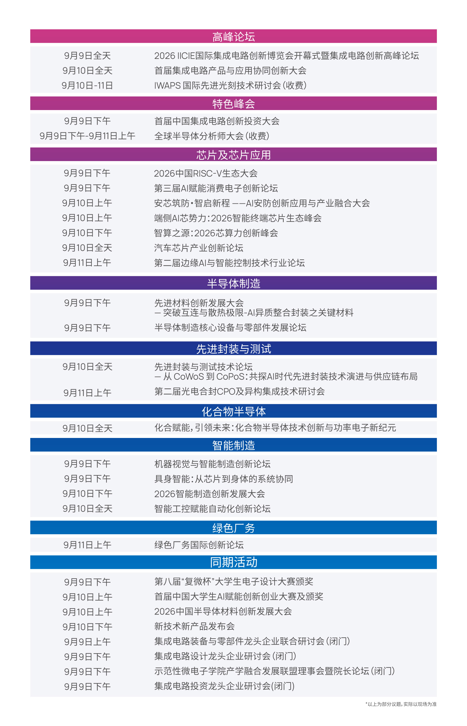 展会期间,将汇聚全球集成电路领域极具影响力的专家学者与产业链龙头企业,聚焦半导体制造、装备材料、先进封装、CPO 光电合封、化合物半导体、机器视觉与智能制造、绿色厂务等关键领域,破解核心技术瓶颈;同时围绕 AI 芯片、RISCV、智能汽车、消费电子、安防、存储芯片等应用场景,搭建芯片技术与终端需求的高效对接平台,推动产学研用深度协同。