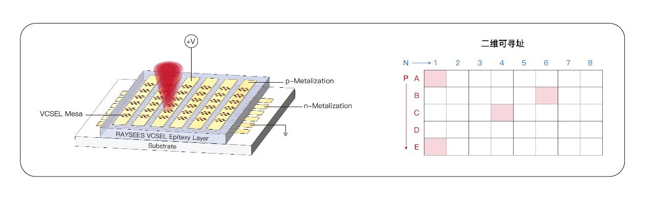 二维可寻址VCSEL正是这场革命的答案。该技术能够将发光芯片划分为众多独立可控的像素单元,实现对每个发光点的开关、功率和时序的精准编程,也是推动高线数雷达实现可靠量产的核心技术。