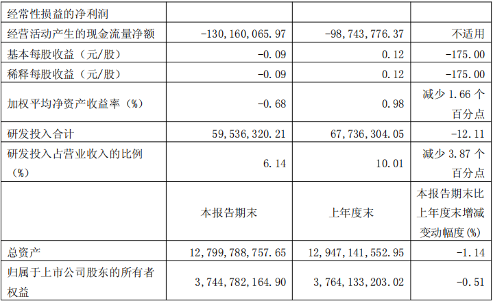 截至报告期末,公司总资产为33.6亿元,较期初增长1.76%;归属于上市公司股东的净资产为30.09亿元,较期初增长0.77%。