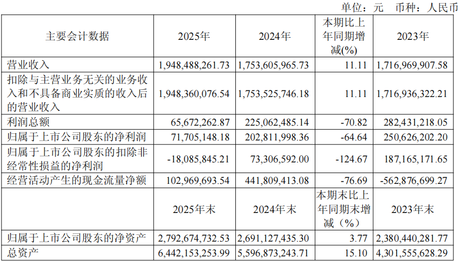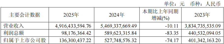 4月17日,正帆科技发布2025年年度报告。报告显示,2025年度公司实现营业收入49.16亿元,较上年同期下降10.11%;归属于上市公司股东的净利润为1.36亿元,较上年同期下降74.17%;归属于上市公司股东的扣除非经常性损益的净利润为8,007.45万元,较上年同期下降83.6%。经营活动产生的现金流量净额为1.97亿元,同比下降50.54%。