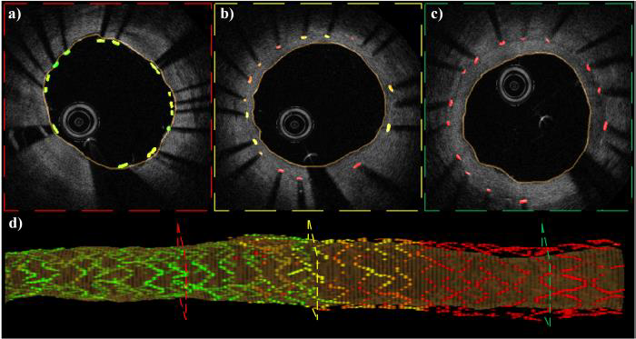 图2. 人体冠状动脉PCI植入支架3D DccA 三维可视化评估:术后内膜新生并发症
