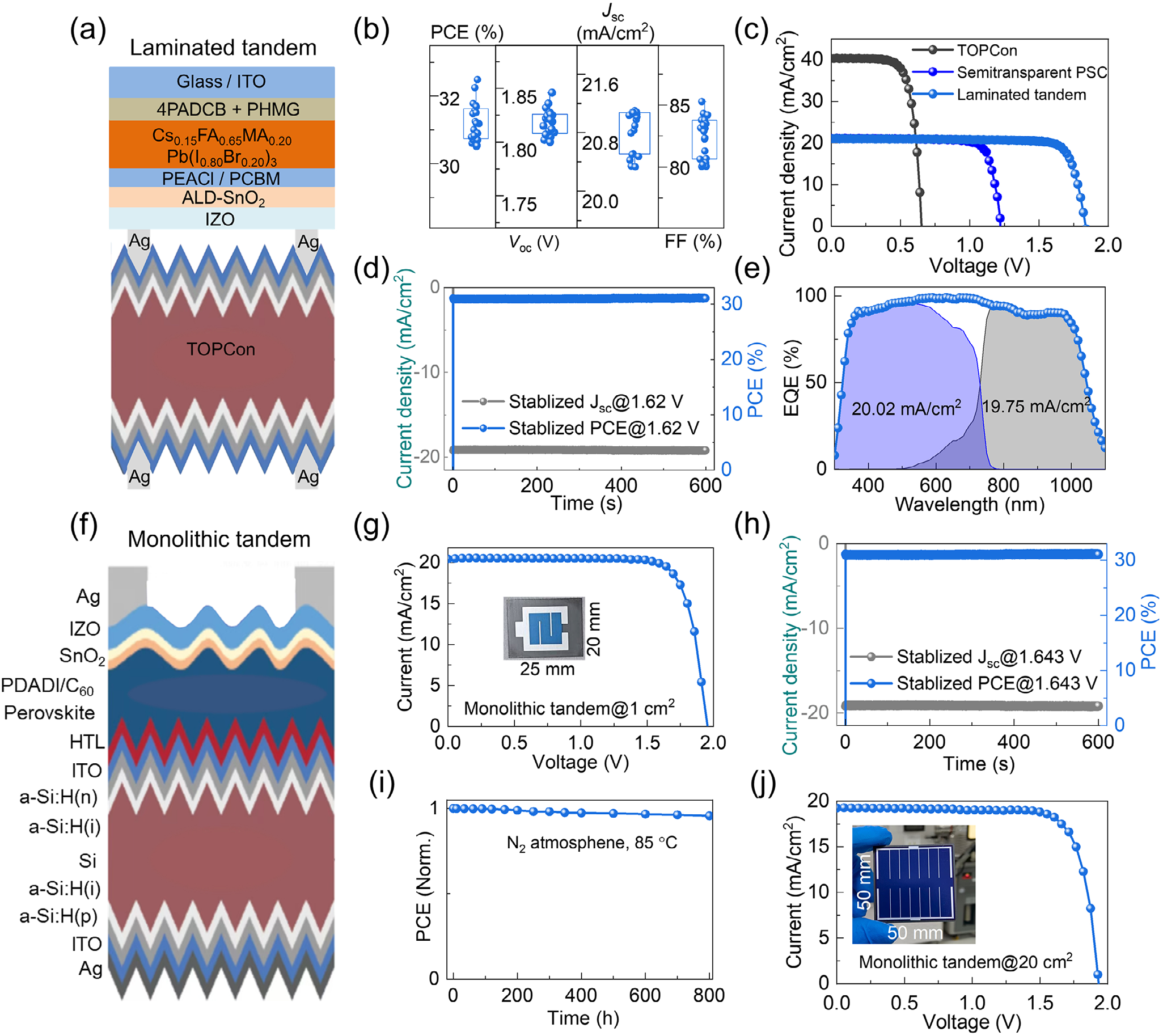 图2. 叠层太阳电池性能表征结果