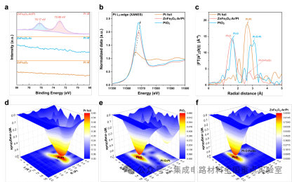 如图3所示,对表面改性的ZnFe2O4光阳极进行光电化学性能测试,相较于原始未优化的样品,基于Pt单原子/氧空位工程协同调控的铁酸锌光阳极器件在1.23 VRHE的光电流密度从0.02 mA/cm2增强至0.7 mA/cm2,实现了35倍的性能增强。同时,光电压等关键性能参数均得到同步优化,表明表面工程策略对器件整体光电化学性能具有系统性增强作用。