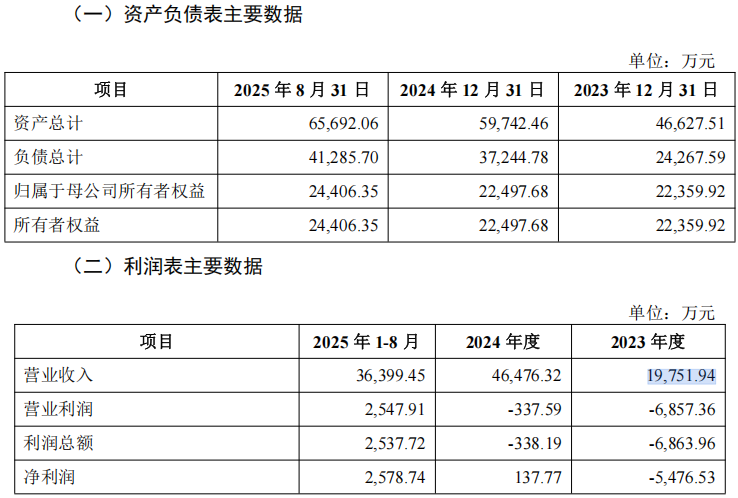 报告期内,长益光电经营业绩稳步提升。2023年、2024年及2025年1-8月,公司营业收入分别为19,751.94万元、46,476.32万元和36,399.45万元,归属于母公司股东的净利润分别为-5,476.53万元、137.77万元和2,578.74万元,实现扭亏为盈并持续增长。