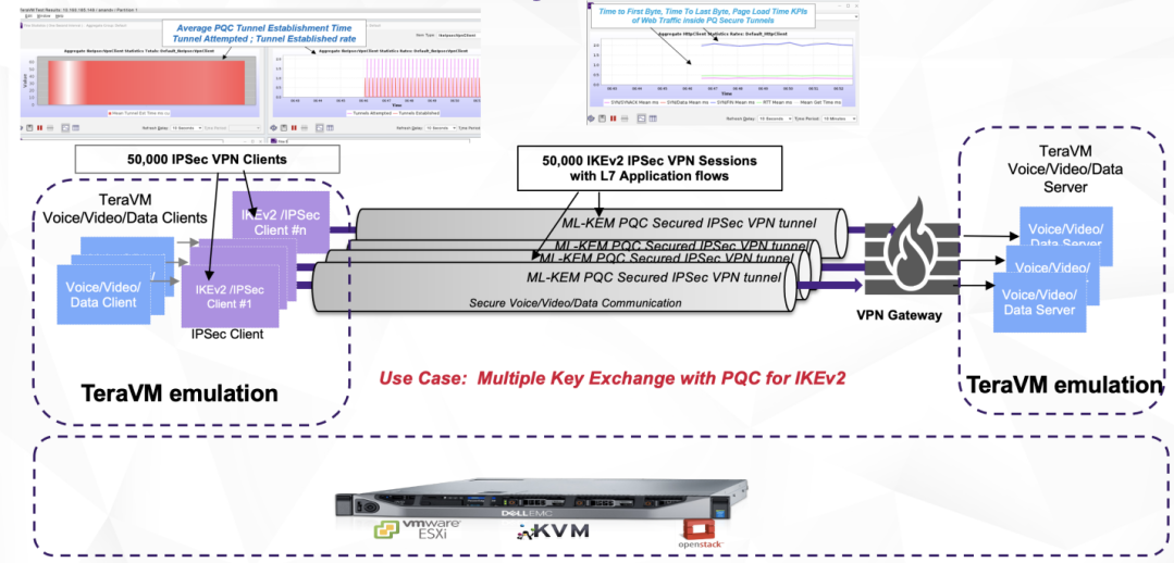 在传统VPN测试领域,我们拥有市场领先的测试工具,已为思科、 Palo Alto Networks等领先安全厂商提供专业测试服务。基于这一深厚积累,TeraVM已进化为全球首个覆盖IPSec和TLS的PQC迁移测试方案。