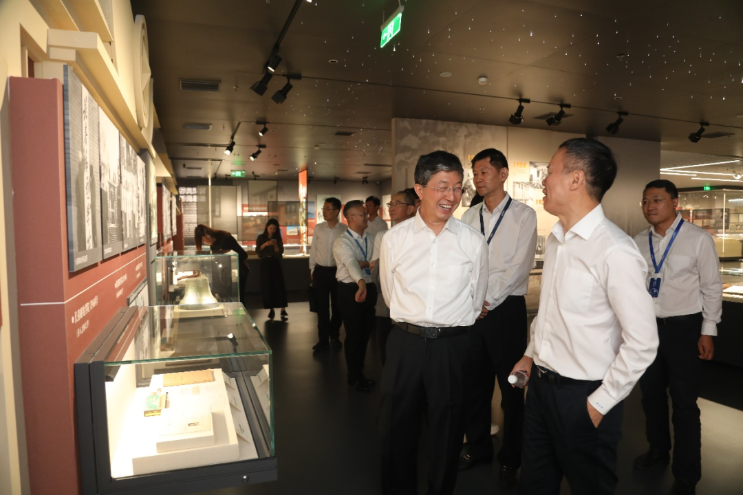在中国信科集团展厅,调研组听取了关于中国信科集团发展历程、核心技术与荣誉成果的介绍。赵志国委员对中国信科在光通信、移动通信等领域取得的突破表示赞许,对近年来多项关键核心技术领域的进展高度认可。