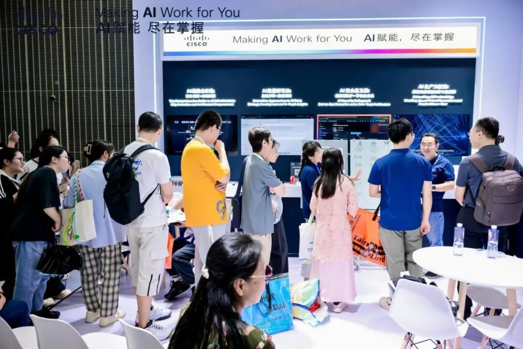 本次展会,思科以“解密 AI 未来”为主线,打造五大沉浸式主题展区,全方位呈现从“芯”到云、从技术到应用的端到端赋能能力。