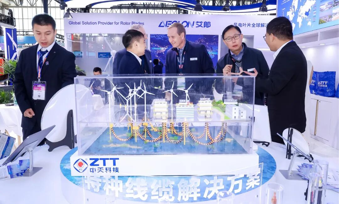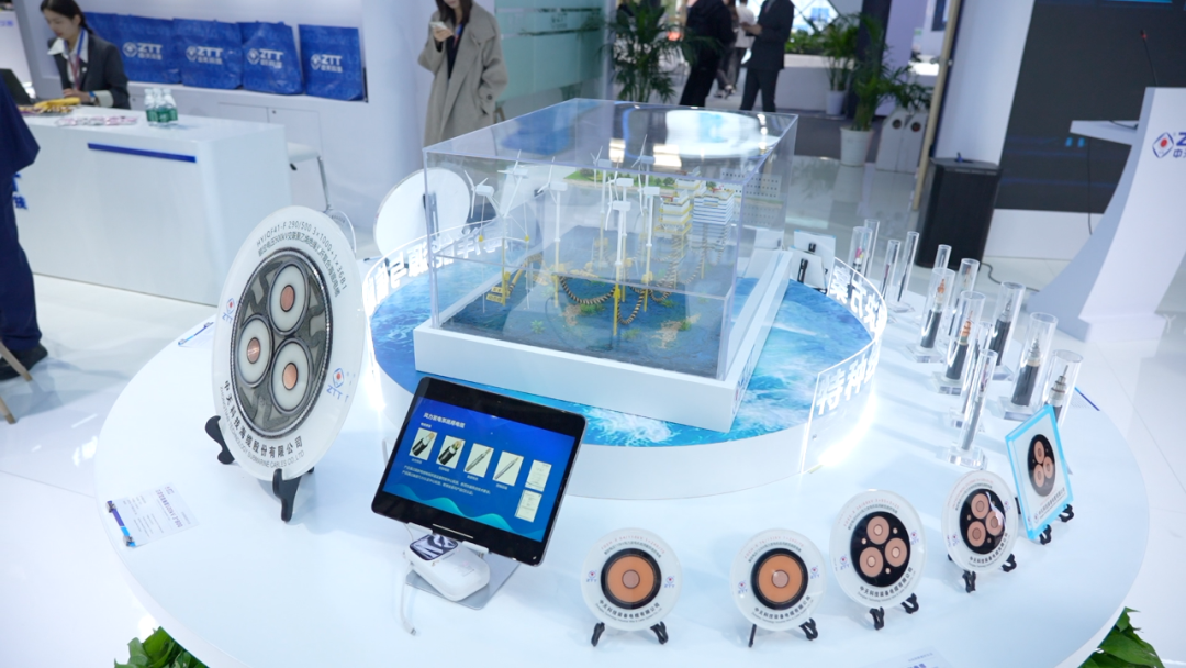 展会期间,中天科技重点展出“双500”超高压海缆系列产品(±500kV 80℃直流海缆与±500kV铝芯直流海缆),实现了在超大容量、深远海输电领域的技术突破。同时,66kV高压风能电缆系统实现规模化稳定交付与应用,并研发成功132kV橡胶风能电缆,达到国际领先水平,为海上风电的高效化、体系化发展提供有力支撑。