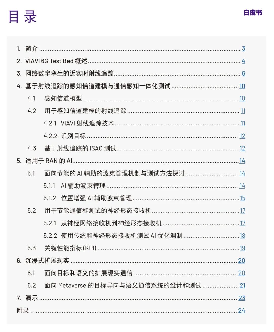 作为3GPP标准化路线图的一部分,全面的6G研究现已正式启动,这标志着向定义下一代移动技术迈出了重要一步。VIAVI(唯亚威通讯)正在研发并提供6G解决方案。欢迎下载 VIAVI Marconi Labs(唯亚威马可尼实验室)出版的《6G 前瞻-从研究到现实-推进6G研究》白皮书。