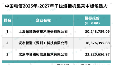 中国电信2025年-2027年干线熔接机集采:光维等厂商入围