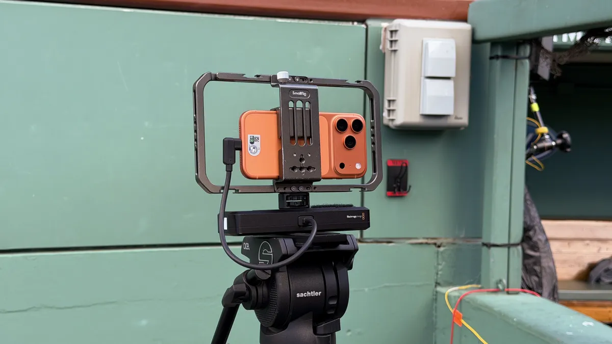 令人意外的是,这次直播并未使用任何苹果内部的定制软件或硬件。四部 iPhone 17 Pro 运行的是可从 App Store 公开下载的 Blackmagic Camera 应用,并搭配三脚架、滤镜等市售标准配件。